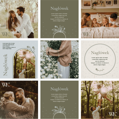 - 7 spersonalizowanych szablonów postów na social media, (edycja w Canva lub Photoshop)